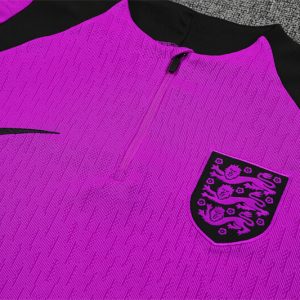 England Football Tracksuit — 25/26 Training Suit (Black/Purple) Level up every session with the england football tracksuit for the 2025/26 season. This two-piece Nike set pairs a long-sleeve quarter-zip top with slim tapered pants in stealth black finished by bold purple shoulder and calf inserts. A monochrome Three Lions crest signs off both pieces for…