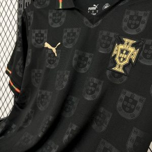 £34.99World Cup Portugal Kit – Away (USA 2026) ⚡️ Focus keyphrase: world cup portugal kit Own the night in the world cup portugal kit away jersey. This blackout design blends elite performance with unmistakable Seleção identity: a deep black base, tonal shield jacquard across the body, and refined flag-colour trims on the cuffs and collar….