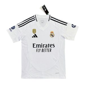 £59.99 Original price was: £59.99.£39.99Current price is: £39.99.GO WITH ONE SIZE UP FOR A BETTER FIT Discover the Real Madrid Shirt 2024/25 at The Newkits The Real Madrid shirt for the 2024/25 season has officially launched, showcasing a stunning design that blends tradition with modern flair. Designed by adidas, this home shirt features a classic pure white base adorned with a…