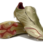 Step into a new era of velocity with the Adidas F50 Tunit Gold/Red – FG. These are not just any adidas shoes f50; they are a tribute to a global speed legacy, re-engineered for the tactical and physical demands of the 2026 season. Featuring the iconic champagne gold upper with striking metallic red accents, this model is the ultimate tool for players who rely on explosive acceleration, surgical precision, and a bold presence to change the game.