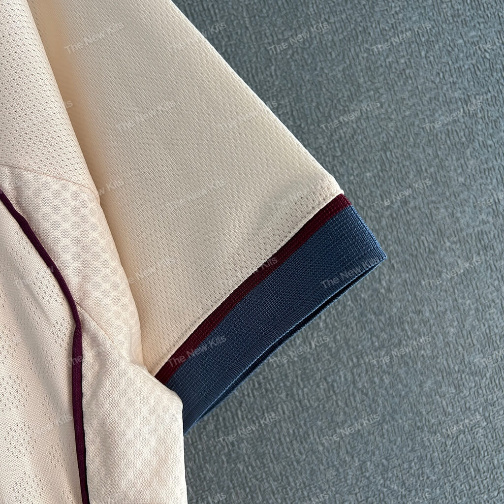 The ajax amsterdam kit lands in a soft, halo-ivory tone that feels classic. It looks clean from a distance and sharp close up. Moreover, the claret and blue trims frame the collar and cuffs. Also, a neat inside-neck seal gives a subtle, collector feel. The cut hugs the player silhouette yet lets you move.
