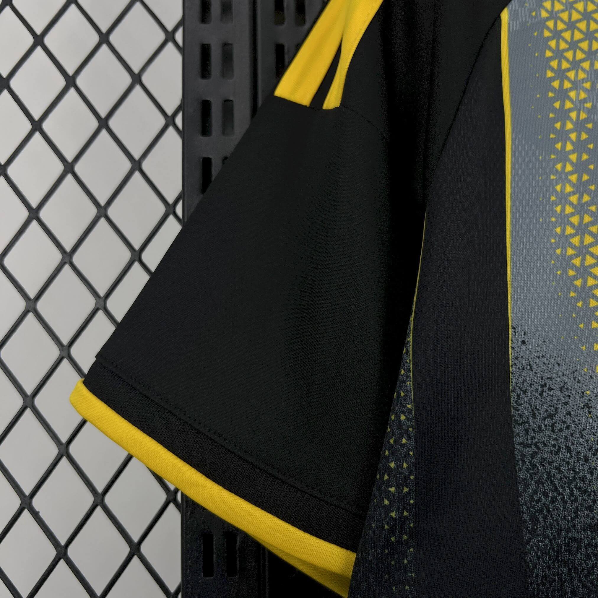 Professional Trim: Yellow piping frames the crew-neck collar and sleeve cuffs to give the jersey a sharp silhouette.