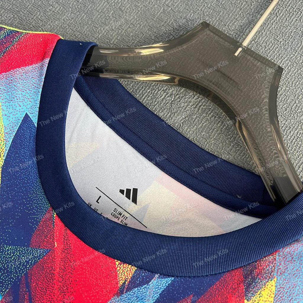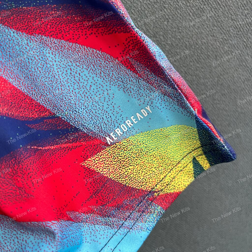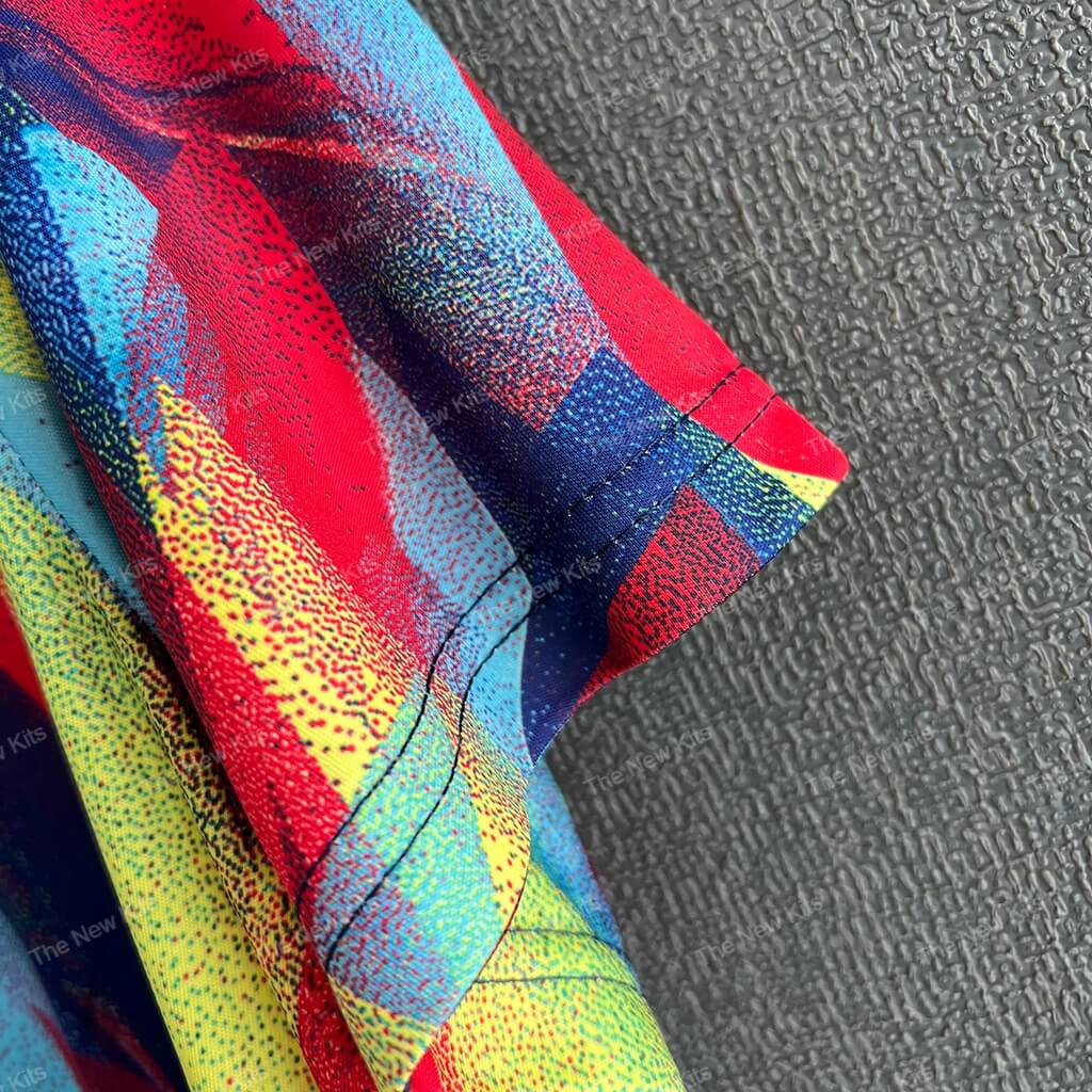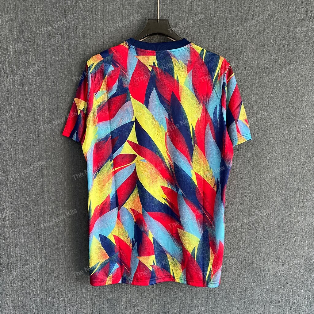This Arsenal training kit explodes with color and motion. A dynamic blend of red, yellow, blue, and purple brush strokes creates a graffiti-inspired design that mirrors the energy and creativity of the Gunners. The shirt’s artwork-like aesthetic ensures it stands out in any setting—from the training ground to streetwear scenes.