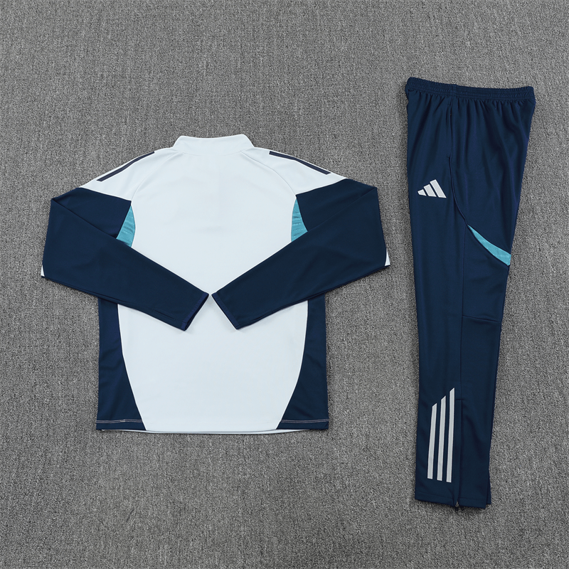 Own the same sharp look the Gunners wear between matches. The Arsenal Training Jacket 25/26 combines a clean white body with deep-navy sleeves, teal side inserts, and shoulder 3-Stripes for a pro training-ground finish. Lightweight, quick-dry fabric keeps you comfortable from warm-up to cool-down, while a streamlined cut moves with you during high-tempo drills.