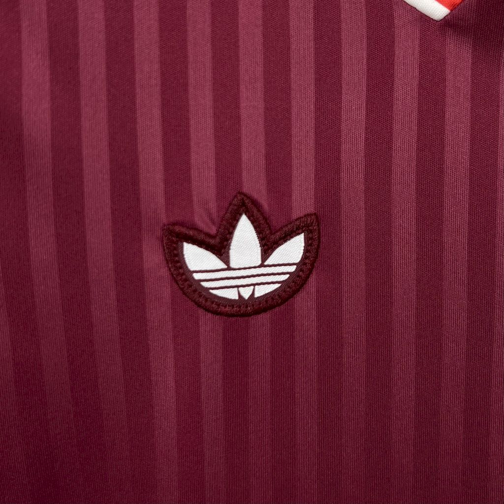 • Ribbed Crew Neck: Contrasting white and red collar echoes 1980s Bavarian kits.