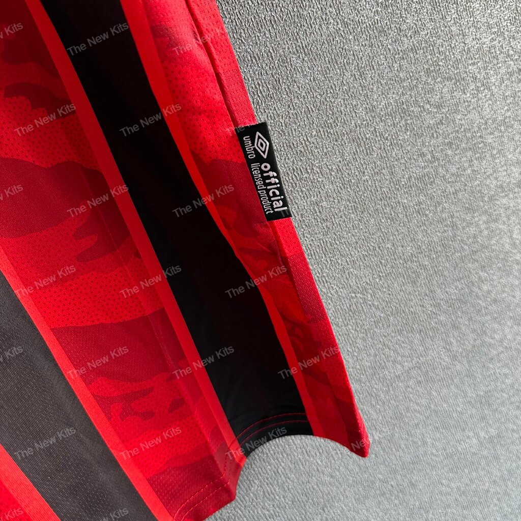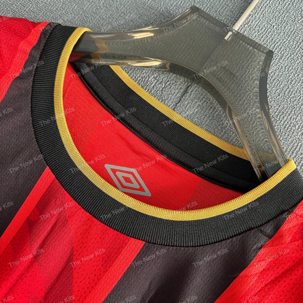 Classic Vertical Stripes: The front body is dominated by broad red and black stripes that represent the heart and soul of the club. 🍒