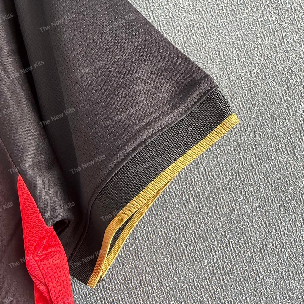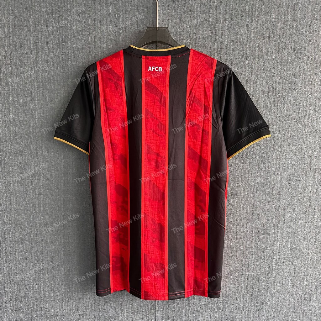Refined V-Neck Collar: A sharp black and gold tipped V-neck collar provides a sophisticated, professional frame for the bournemouth fc football kit. 👔