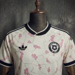 The 2026 away design features a sophisticated off-white base adorned with a vibrant, all-over pink floral pattern. This artistic approach is grounded by sharp black and white accents on the collar and sleeve cuffs, providing a modern, high-contrast look that transitions perfectly from the stadium to the street. Because this jersey uses high-performance breathable fabric, it remains the top choice for supporters who value both aesthetic flair and functional durability.