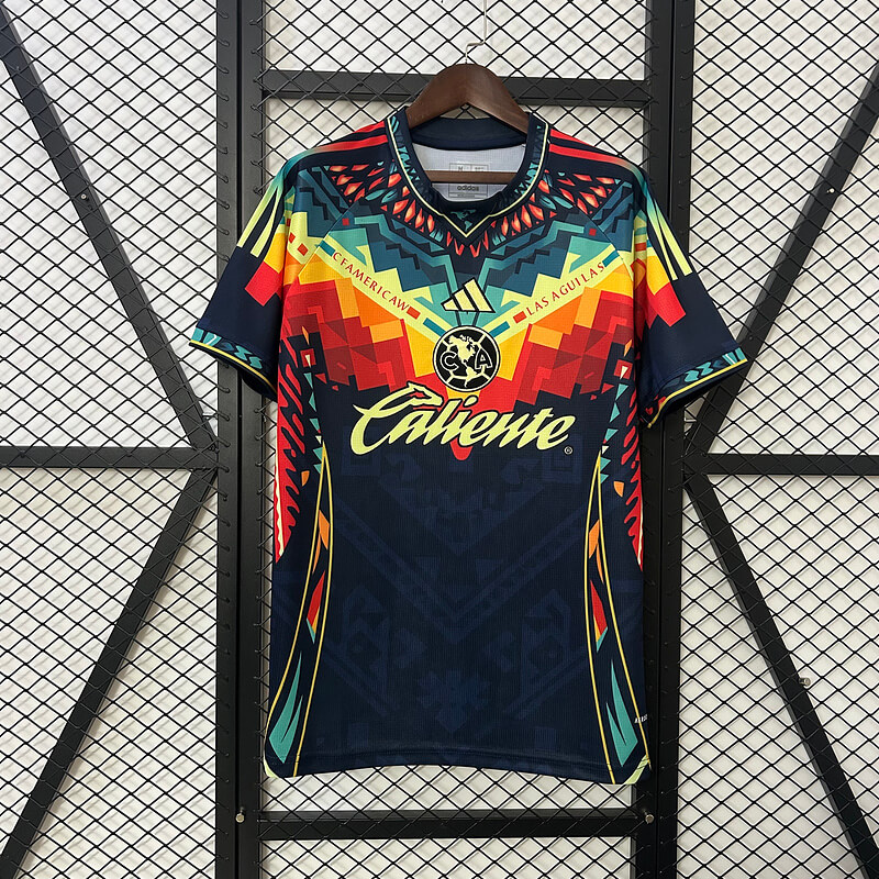 Symbolic Details: The chest features a powerful eagle motif, embodying the spirit of Club America, along with the iconic club crest prominently displayed at the center.