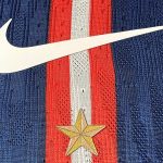The england shirt features a crisp white base for a sharp, authoritative silhouette. Furthermore, a massive central vertical stripe anchors the entire design. This navy blue stripe contains intricate red lion graphics that flow along the edges. Notably, the iconic Three Lions crest sits proudly at the center of the chest. A gold star rests above the crest to honor England’s World Cup heritage. Additionally, the stripe continues down the back for a complete, 360-degree visual impact. The sleeve cuffs feature a detailed red and blue tricolour pattern to finish the look.