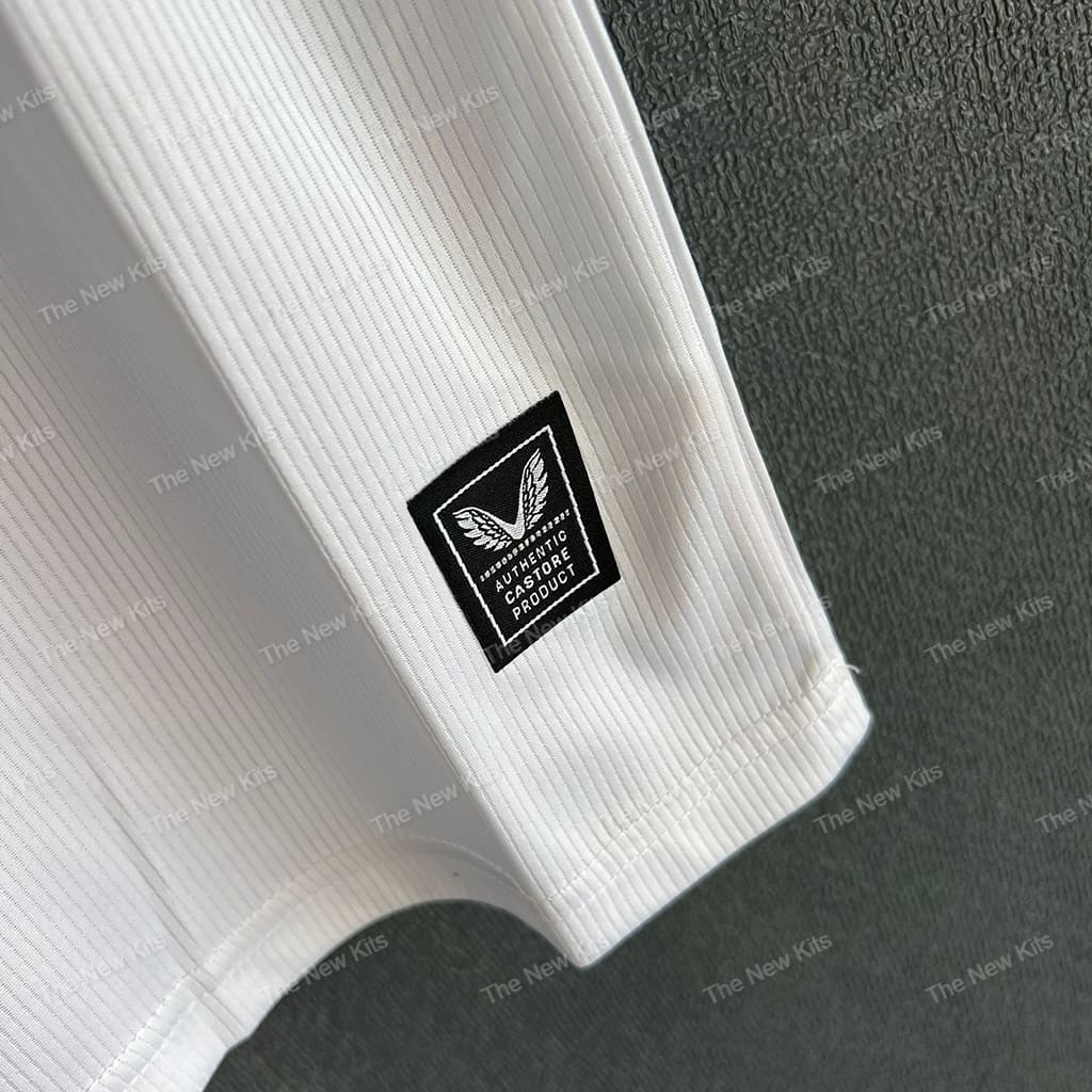 The most eye-catching part of this Feyenoord football kit is the classic red and white split down the middle. Additionally, gold trim on the collar and sleeves adds a touch of elegance. The club crest and Castore logo are embroidered in gold, giving the kit a premium feel.