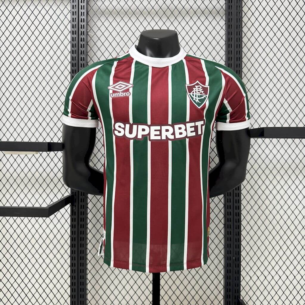 Umbro delivers a modernized layout of the traditional Fluminense jersey aesthetic, maintaining the vertical striping that defines the club while updating shape, spacing, and materials to meet current player standards.