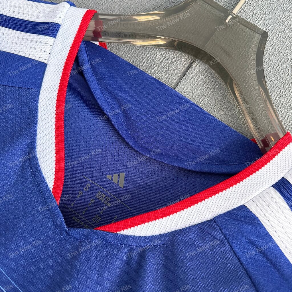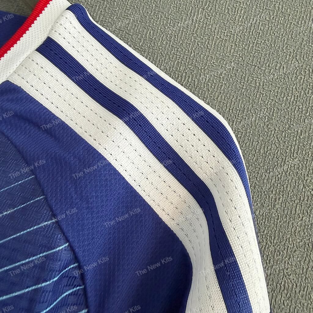 Step out in the spirit of Samurai Blue with the Japan 2026 World Cup Home Kit. This deep blue jersey celebrates national identity through precision linework radiating from the chest, framing the JFA crest at center stage. Clean three-stripe shoulders and a bold red–white trimmed V-neck add crisp contrast, while the modern performance knit keeps you cool from warm-ups to the final whistle. It’s heritage, craft, and competitive edge—designed for the biggest stage in football.