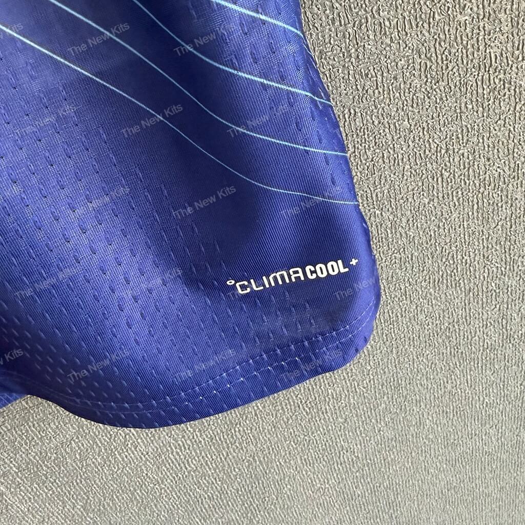 Inspired by Japan’s meticulous craftsmanship and kinetic movement, the shirt features concentric arc graphics that ripple across the torso and sleeves. The effect creates a dynamic, fast silhouette without overwhelming the classic home blue. A textured front panel adds depth under stadium lights, and the JFA badge—with its iconic three-legged crow—sits confidently on the chest. Subtle side shaping and shoulder articulation ensure a clean, athletic drape whether you’re in the stands or on the pitch.