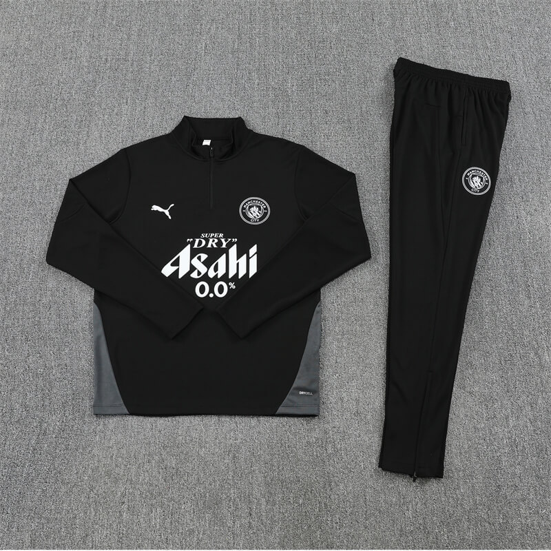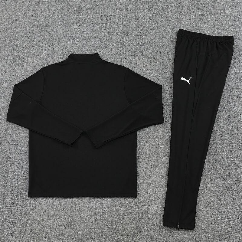 Own every session in the man city training kit for 25/26. This two-piece tracksuit blends stealth styling with performance tech: a matte-black ¼-zip training top and slim, tapered pants built for warm-ups, gym work, and recovery days.
