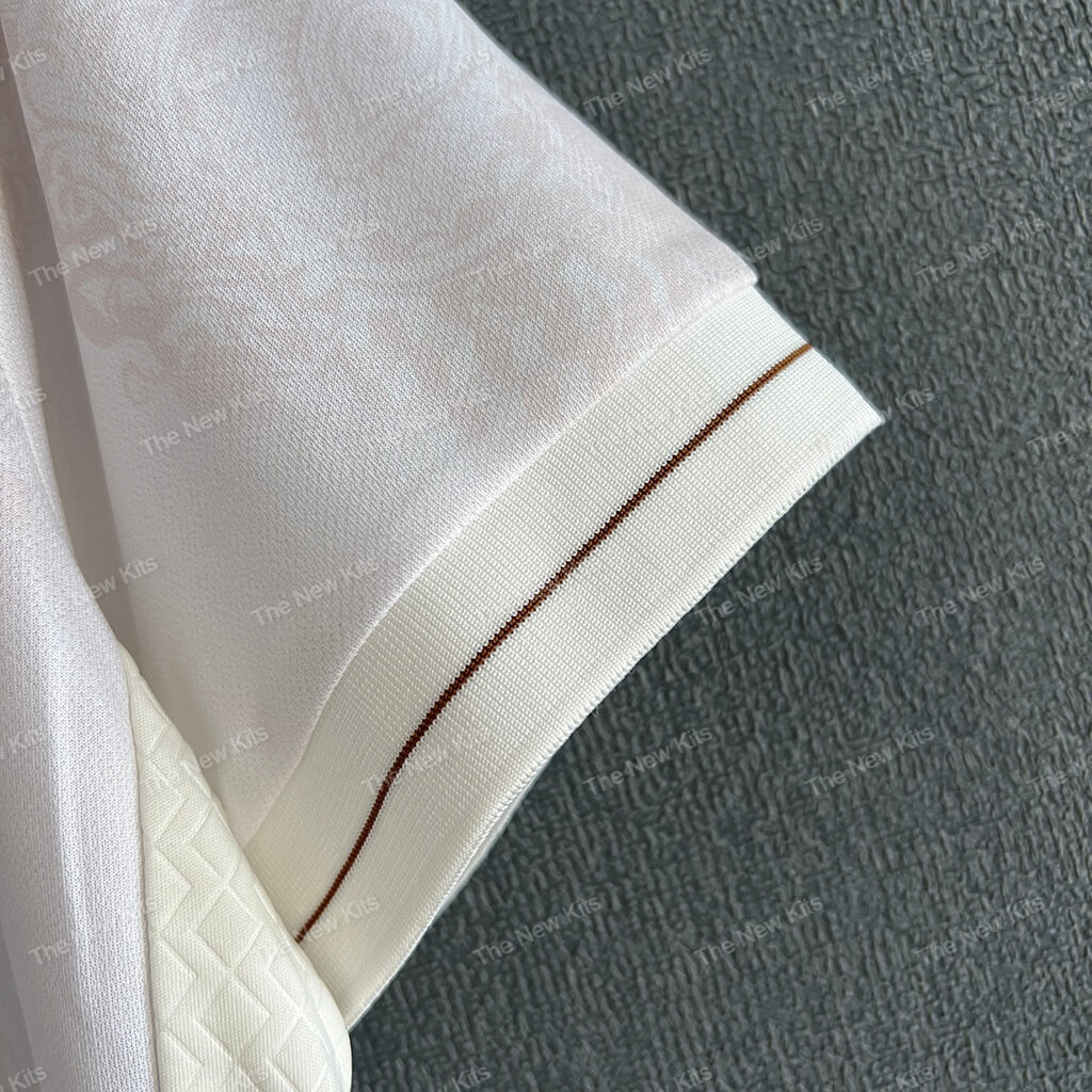 While the design embraces tradition, nothing compromises on performance. The fabric is ultralight, breathable, and cut for movement—designed to drape like liquid marble during a sprint, yet stay grounded through 90 minutes of intensity.
