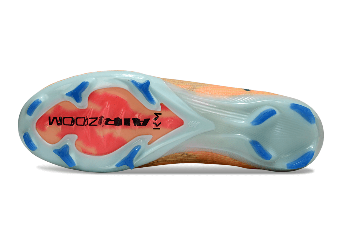 Explosive speed, ruthless control, and KM style—all in one. The Nike Mercurial Kylian Mbappé signature edition pairs a springy Air Zoom plate with a precision-textured Vaporposite+ upper and a snappy tri-star/chevron stud layout, helping you burst past markers and finish clinically. The bold KM details and vibrant palette make it unmistakably Mbappé.