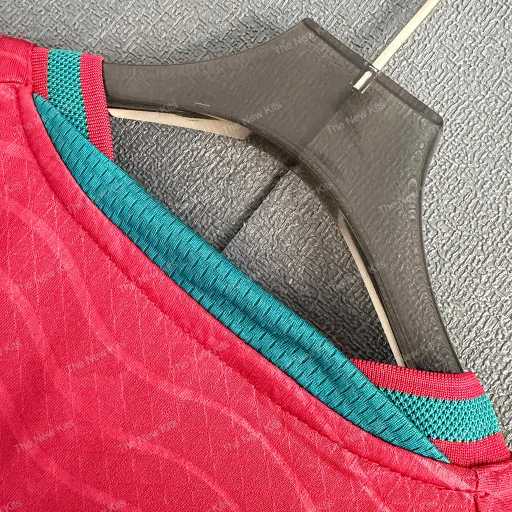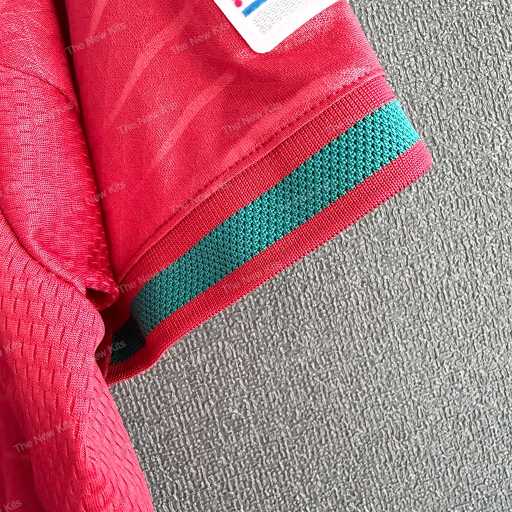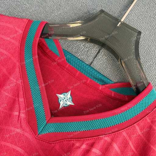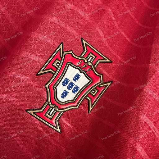 Signature palette: Rich Portugal red accented with green collar and sleeve tipping for unmistakable national identity.