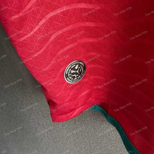 PORTUGAL 2026 World Cup kit – Home (Player Version) • Deep red base • Green V-neck & cuffs • Tonal wave-knit jacquard • Heat-applied crest • Ultralight, breathable, 4-way stretch fabric • Slim competition fit • Bonded seams
