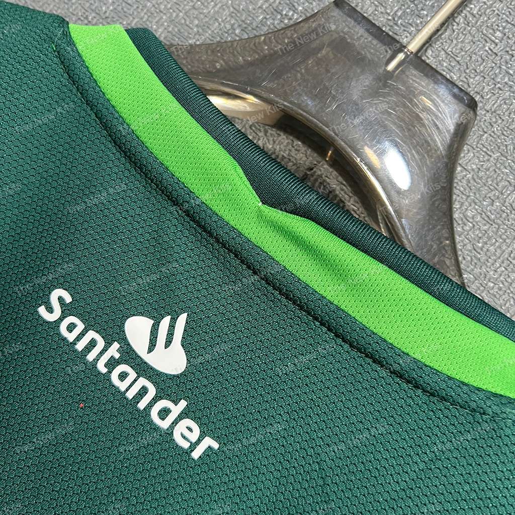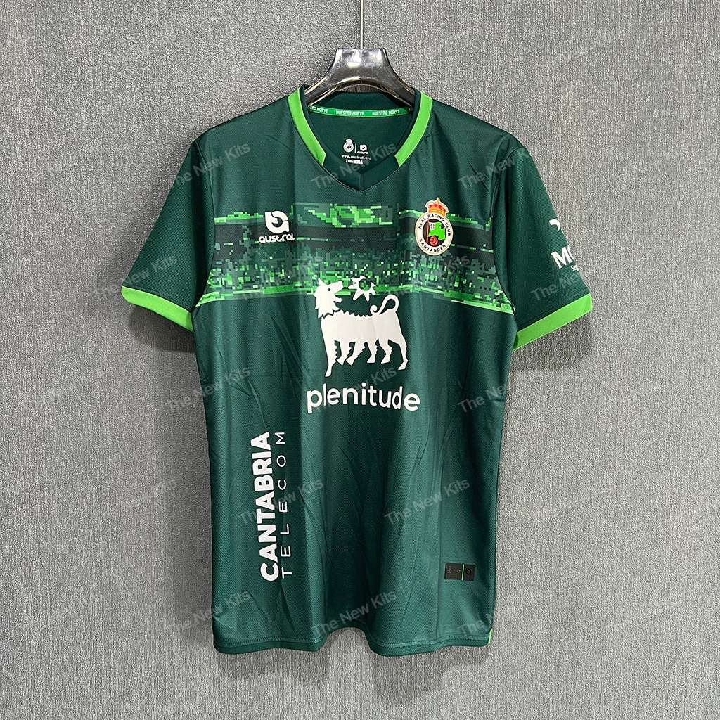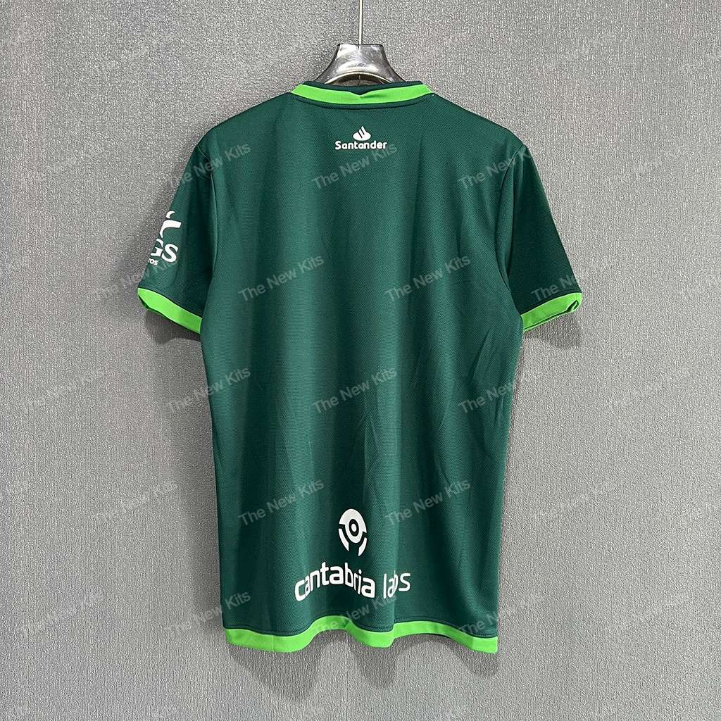 Stand out on the road with the Racing de Santander kit kit for the 2025/26 season. This away shirt mixes a rich forest-green base with a pixel-graphic chest band in lighter greens, neon-green collar/cuff trim, and the club crest over the heart. Clean, modern, and built for all-day comfort.