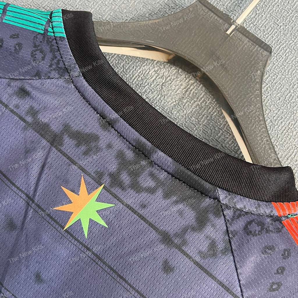 The NOCTA Venezia jersey 25/26 Home fuses high-fashion intent with pro-level performance. It reads as a cultural drop and a match shirt at once: a deep black base, metallic chest branding, and vivid orange/green side piping that frames the silhouette for both camera and crowd.