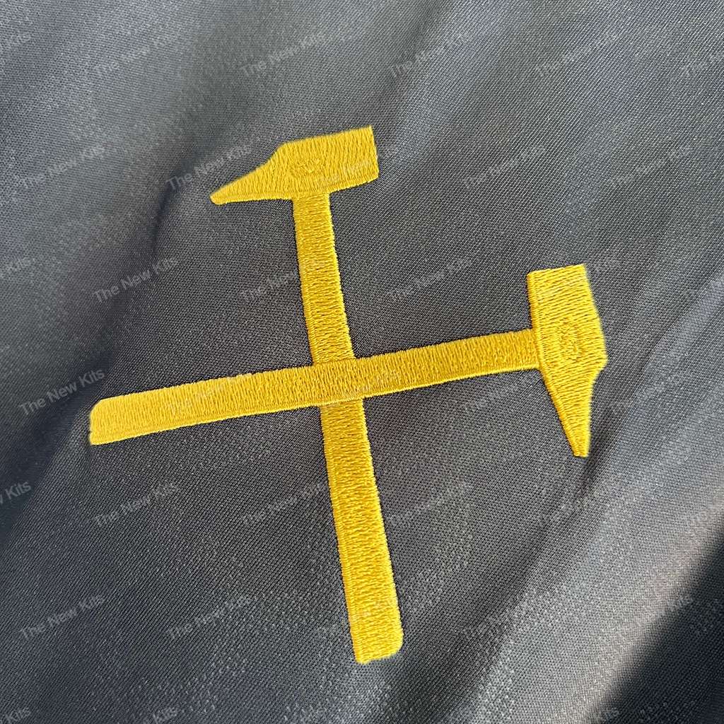 West Ham’s third look for 25/26 goes minimalist and confident. The navy canvas lets the gold accents lead—collar tips, sleeve edges, and side vents deliver subtle color pops. The mono badge leans into heritage while keeping things sleek, so the west ham shirt pairs as well with denim as it does with training shorts.