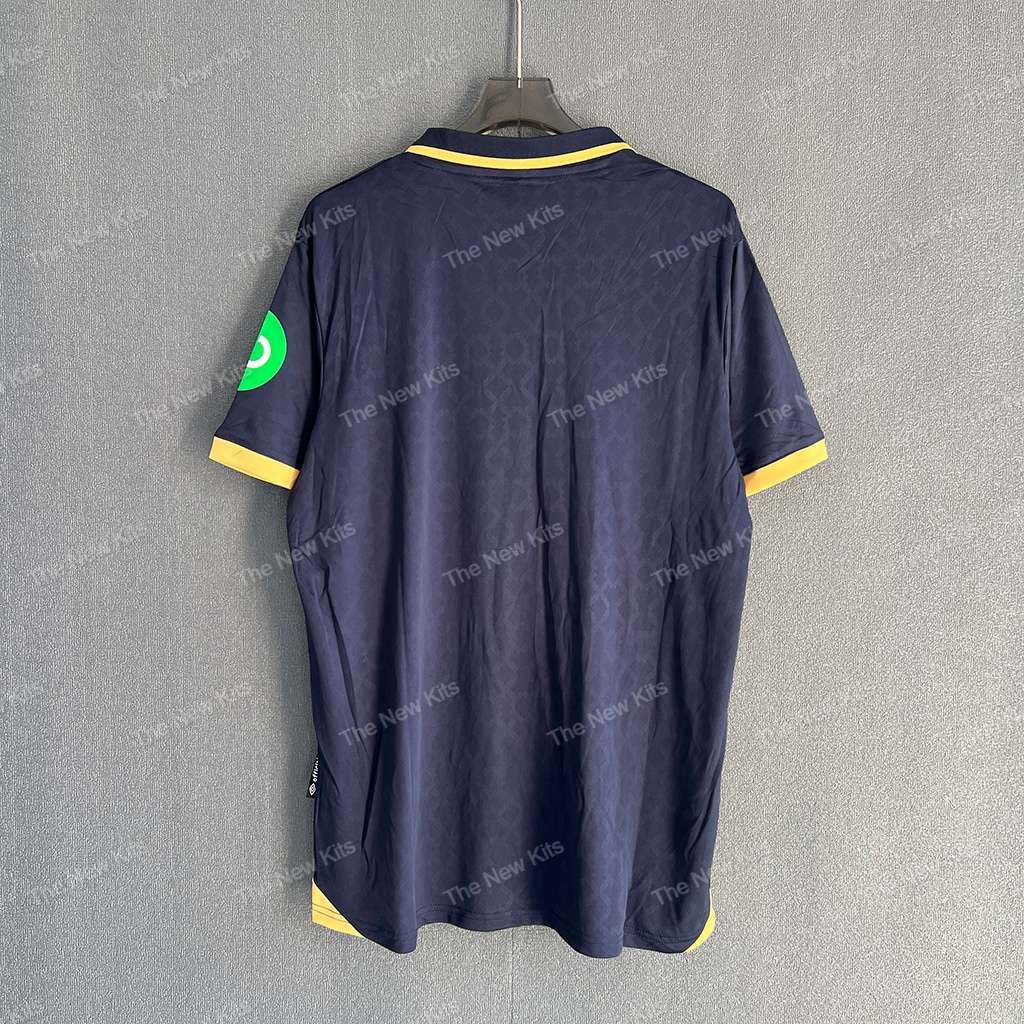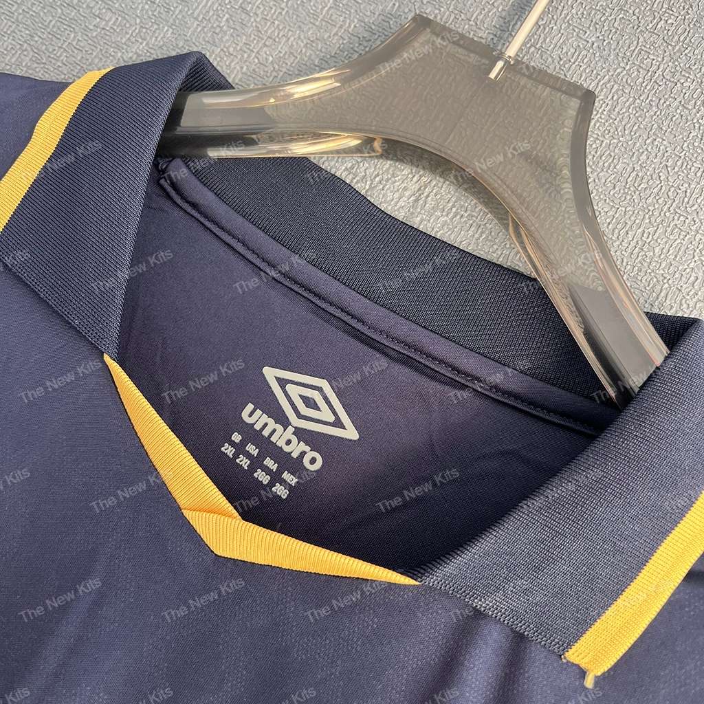 • Standout third-kit palette: rich navy body with gold collar and cuffs that pop without being loud