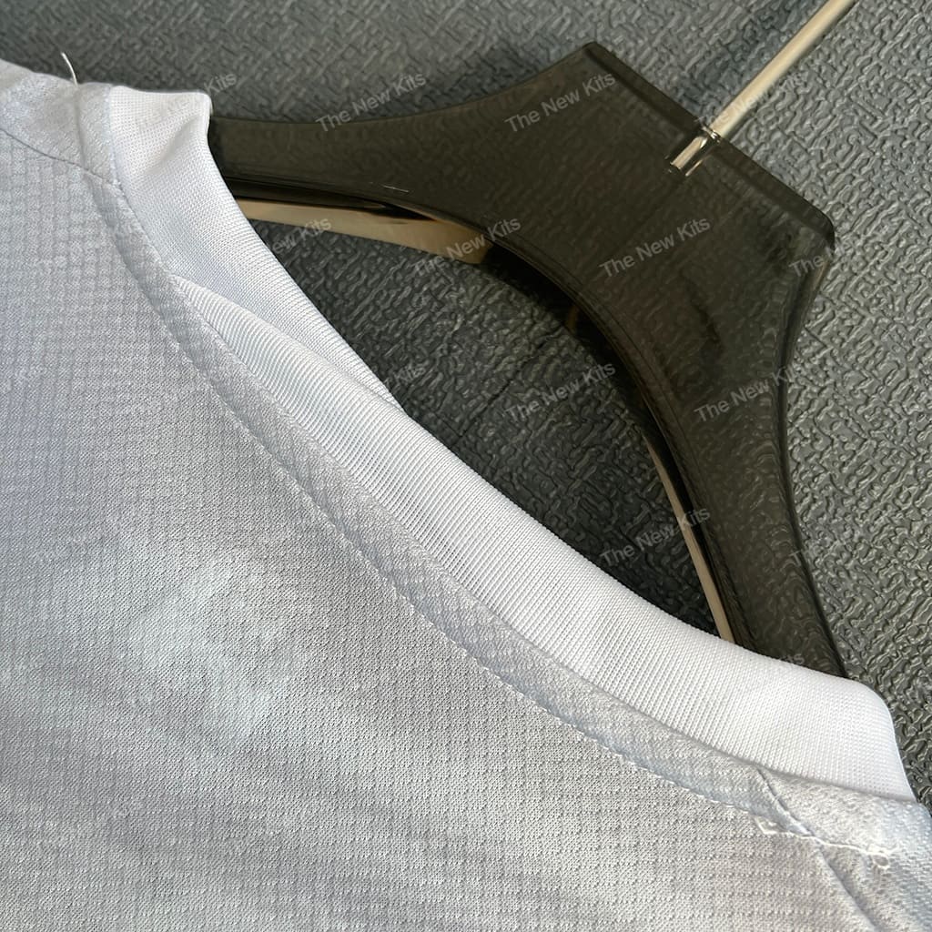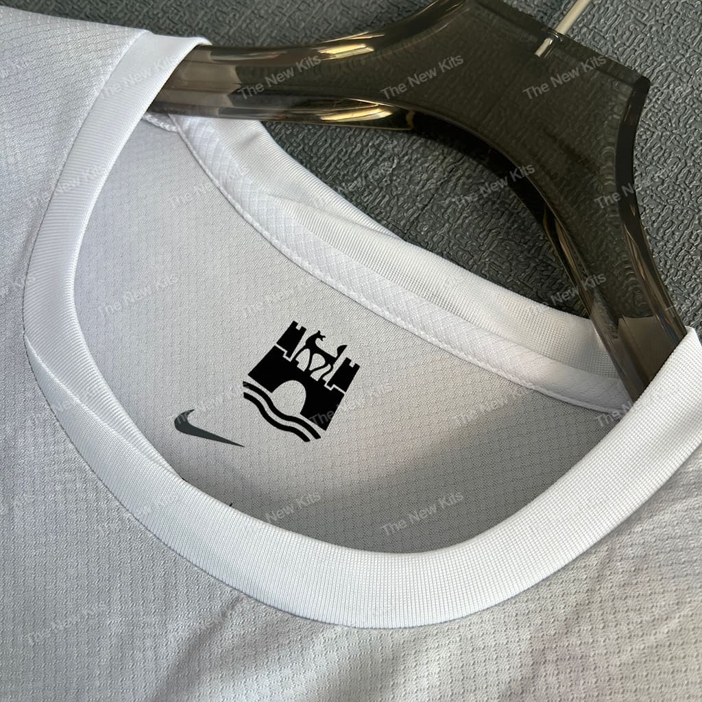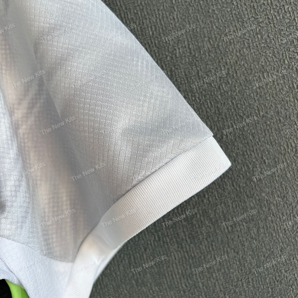 The shirt’s all-white foundation is accented by jet-black and volt-green elements that quietly pop. It’s not flashy—but it doesn’t need to be. The club crest and Nike Swoosh are executed with subtle neon outlines, giving the shirt a cold glow under stadium lights.